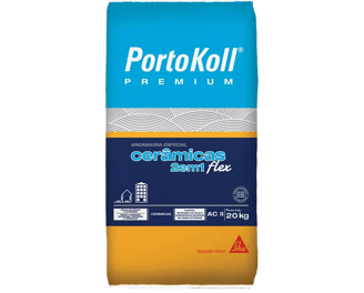 PortoKoll PREMIUM® Ceramicas Flex 2 em 1 é uma argamassa desenvolvida especialmente para o assentamento de cerâmicas em fachadas e áreas externas. Este produto é industrializado e classificado como ACII, conforme ABNT NBR 14.081-1