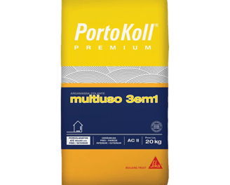 PortoKoll PREMIUM® Multiuso 3 em 1 é uma argamassa de excelente desempenho para ambientes internos e externos nos mais variados tipos de revestimentos. Este produto é industrializado e classificado como ACII, conforme ABNT NBR 14.081-1