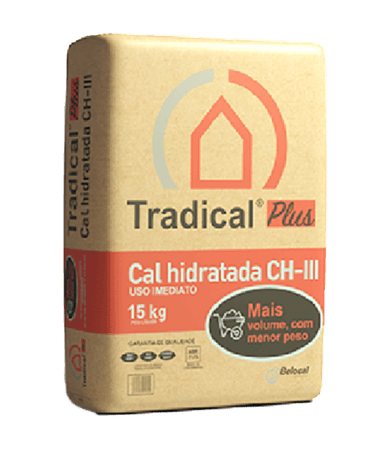 A Cal Hidratada CH-III PlusTradical® é uma cal hidratada normatizada de alta qualidade, atendendo aos requisitos técnicos da norma ABNT NBR 7175, indicada para a preparação de diversos tipos de argamassas por sua ação como aglomerante e plastificante. Além de propiciar a melhor plasticidade e liga para a argamassa, a cal é a única com propriedades aglomerantes, trazendo maior resistência, aderência, elasticidade, rendimento e economia para a argamassa.