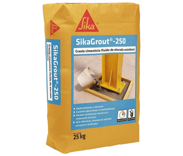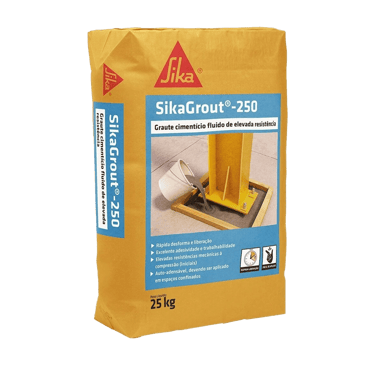 SikaGrout®-250 é um graute pré-dosado composto de cimento Portland, areia de quartzo de granulometria selecionada e aditivos especiais convenientemente dosados. É fornecido pronto para o uso, bastando a adição de água na proporção recomendada para se obter a consistência e resistência mecânica indicada.